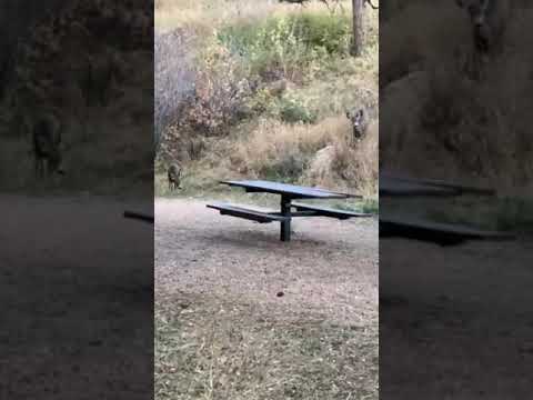 On one side of the campground (across from the road) is an enormous grassy hill. We looked for bighorn sheep with no luck! The other side of the campground is surrounded by the Cache la Poudre River.