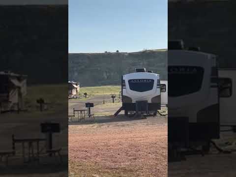 Close to Teddy Roosevelt National Park! The grounds are nice and the office has a small store with some souvenirs and camp essentials. Bathrooms were clean and the campground was overall pretty quiet. We don’t have the biggest camper, but it was big rig friendly for sure. Highly recommend the nearby pitchfork steak fondue place for dinner! I believe that you can rent covered wagons here to sleep in as well if you are looking for a truly unique and western experience. Maybe not authentic to the Oregon trail days since you will have a real house door, but still super neat that they offer this! Campground close enough I was able to walk into the national park one morning. I would compare this place to like a KOA or something of that sort. It has more of that RV park kind of feel to it. You can see in the last photo the empty site next to mine with another small camper on the other side of that. The photo of the map can also give you an idea of how packed the sites are. If you are looking for some space and privacy, look into other options. If you are looking for convenience to the national park, stay here!
