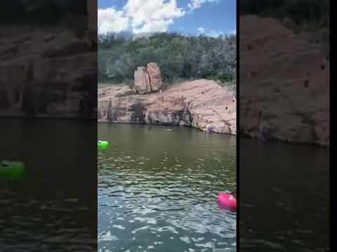 One of the highlights of the trip was visiting the cove within the park called the Devil's Waterhole. We brought tubes to float in and chill in the water. I’ve always found that this is the best way to beat the heat in the summer. There is one side of the cove in which people climb the banks up to a rock outcropping to jump into the water below. There are some outcroppings 10 feet above the water, 20 feet and 30 feet. I jumped off the 20 foot high cliff and touched the bottom, so I didn't jump off the 30 feet cliff. It is fun jumping and it is entertaining watching others jump.