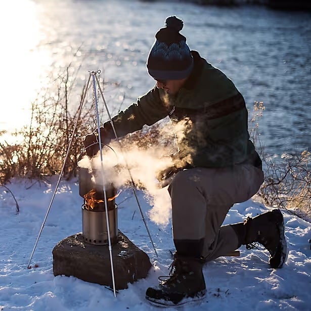 If you want to elevate your camp kitchen, the Solo Stove Campfire Gear Kit is the move. The efficient wood-burning stove boils water fast and throws off a steady, controlled flame, while the pot set and tripod let you simmer soups, brew coffee, or cook a real meal without the hassle of a full campfire. It all nests together neatly, packs down tight, and makes backcountry cooking feel way more dialed-in than you ever thought it could be.
