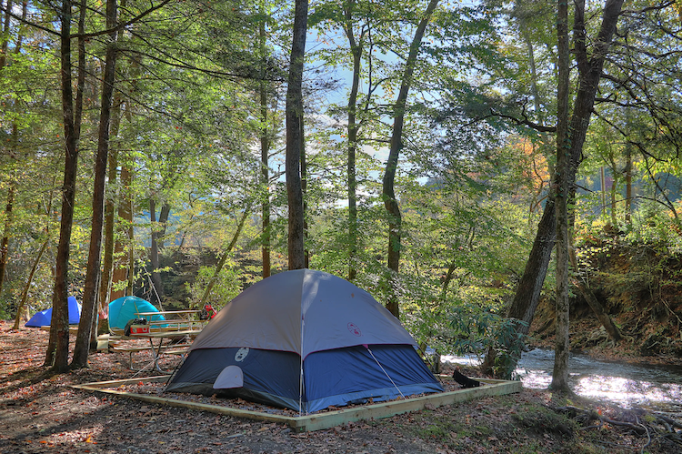 What makes it great: Greenbrier Campground is a standout destination for families looking to experience the magic of the Smoky Mountains. Whether your family prefers tent camping, RV camping, or staying in a cozy cabin, Greenbrier offers full-hookup campsites ranging from premier river frontage sites to wooded sites, along with camping cabins, deluxe camping cabins and bell tents. One of the biggest draws for kids at Greenbrier is its remarkable natural swimming spot right on the property. The Little Pigeon River runs around the campground, offering campers the best swimming hole in the Smokies — the famous Flint Rock — with a private beach and excellent trout fishing along the banks of the river.